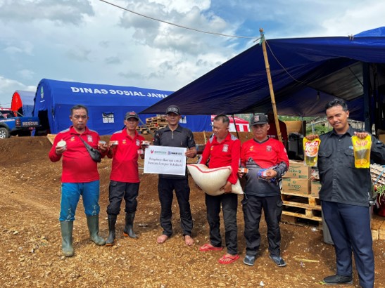 Bencana Tanah Longsor melanda Kampung Cibatu Hilir, Desa Sekarwangi, Kecamatan Cibadak, Sukabumi, Tim ESQ Kemanusiaan memberikan bantuan ditenda pengungsian berupa beras dan rendang kaleng untuk membantu kebutuhan pangan harian para korban bencana tanah longsor.
